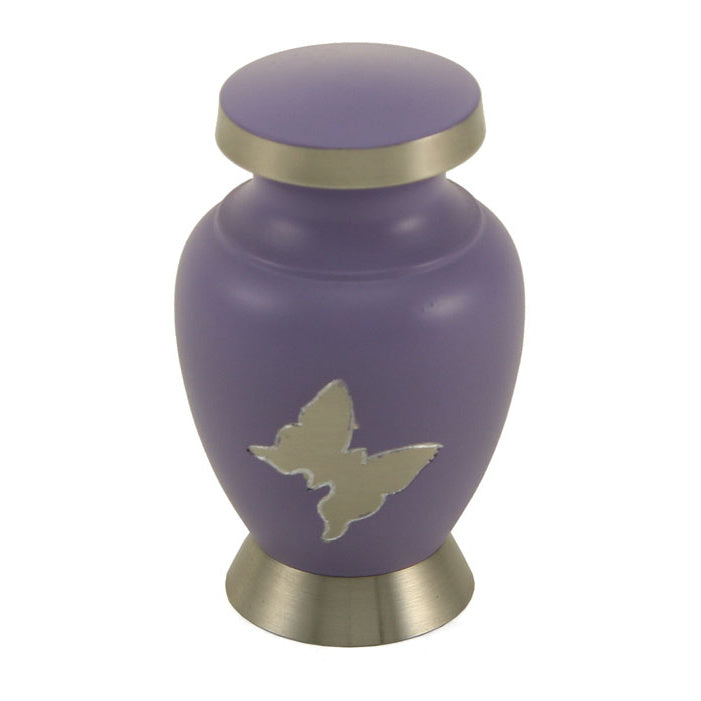The Full Size Aria measures 10"H x 6.6" Diameter (200 cubic inches), the Keepsake Mini Aria is 2.9"H x 1.9" Diameter (3 cubic inches), and the Keepsake Heart is 2.7" x 2.9" x 1.6" (3 cubic inches).