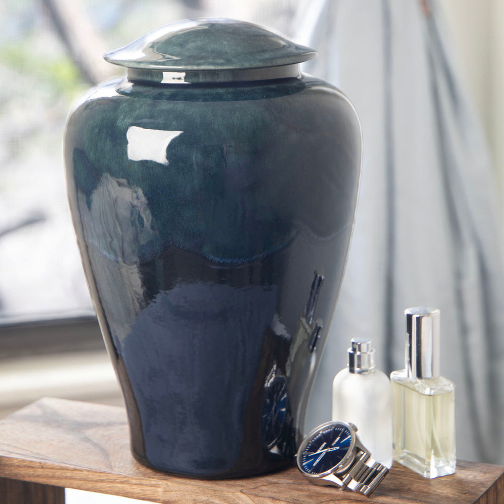 Ceramic urns are often regarded as nearly divine, as they bring together all the elements of the natural world to create one timeless memorial. Spirit inspires the design. Earth and water form the body. Air and fire transform the vessel into a lasting work of art.